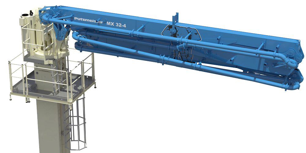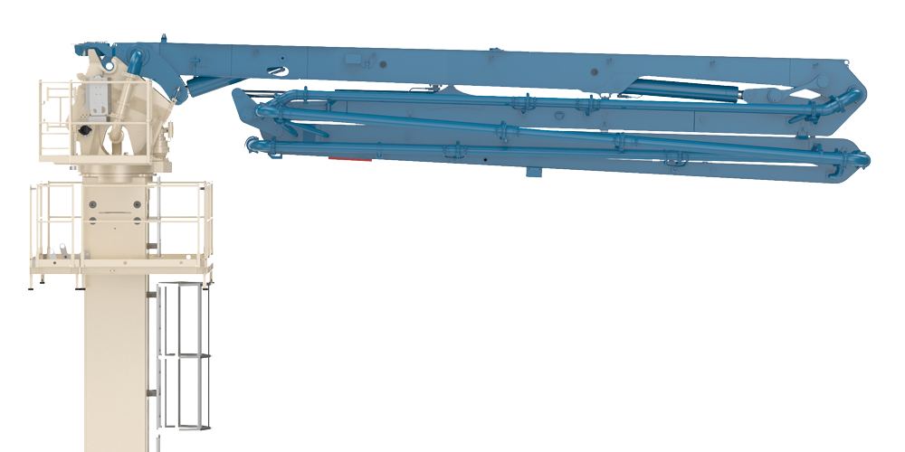Le système innovant de déverrouillage rapide entre le pied de flèche et la colonne tubulaire permet un montage rapide et simple de la flèche de bétonnage.